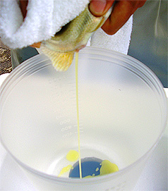 下呂支所で、アマゴの採卵と人工受精が始まりました。