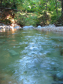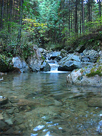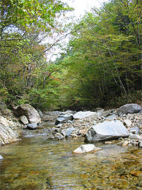 渓流と実験水路で