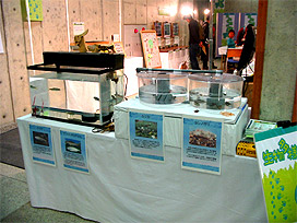 「生物多様性ぎふ展示ブース」 ではワークショップやパネル展示などが行われ、当研究所は展示用の魚類や水槽を提供しました。
