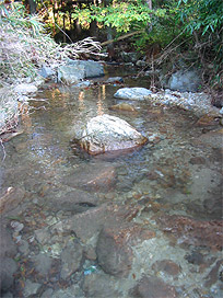 310 m、今日はその上流側の 270 m の区間で調査し、イワナ