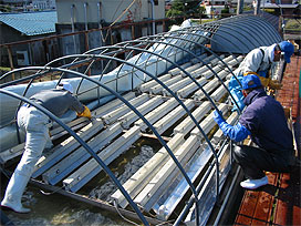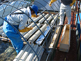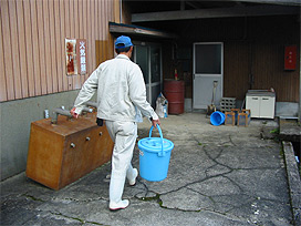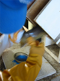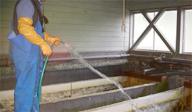 ふ化室の清掃作業