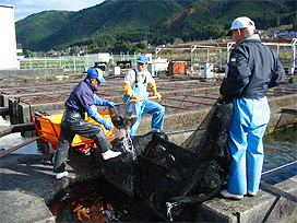 井戸水を流しながら、仔魚期の終わりまで収容 |