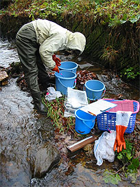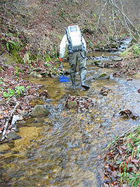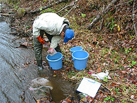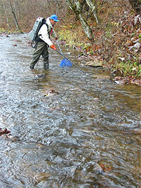 渓流で魚類調査