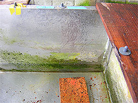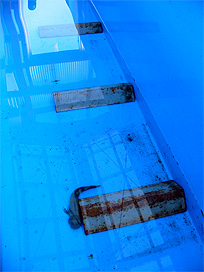 カジカの飼育は超高密度飼育のため、水槽の底に光が届きにくいことで、水槽底面にはあまり藻類が生えません。また、水槽サイズが小さいため、少量の水でも換水率がよくなることや中央から排水していることから、水槽内に残餌や糞が溜まりにくくなっています。そのため、普段はほとんど水槽掃除をする必要がありませんが、魚を移動したときには、側面の藻類の除去などのリフレッシュを行います。