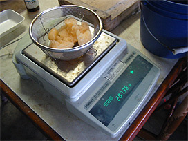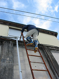 写真は、侵入経路を確かめようと撒いていた白陶土の上を歩いてやってきて、水槽上の自動給餌機の上をウロウロしたあげく糞をしたという、職員の感情を逆撫でする行動をとった小動物の足跡と、産卵間近のカジカをことごとく食害したあと、必死にステンレスの水槽を登った小動物の足跡です。