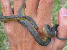 昨年の晩秋に川岸で見つけたタカチホヘビ (Achalinus spinalis) です。
