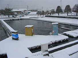 下呂支所では、寒い日が続いています。凍結に備えて、職員が飼育池の注水部や配管の点検を行っています。