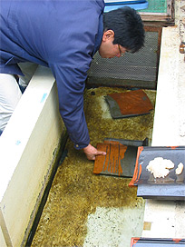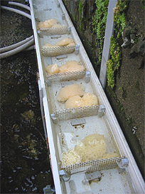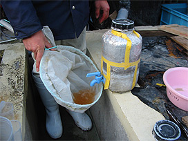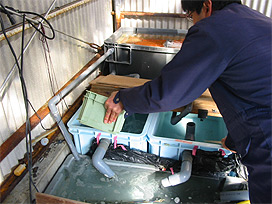 回収した卵を卵管理水槽に収容 |