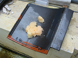 瓦の裏側に産み付けられた卵 |