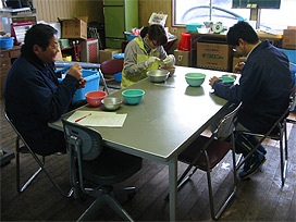 カジカの採卵作業