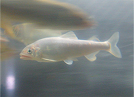を呈した個体のことで、ニジマスではその存在がよく知られており、脳下垂体が欠損した個体に現れる特徴のひとつといわれています