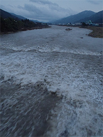 下呂支所も 15 時頃から猛烈な風雨に見舞われました。隣を流れる益田川