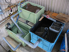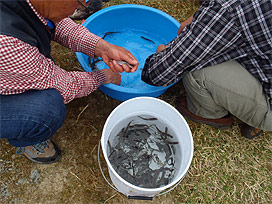 水槽で飼育していたイワナを A 号池に移し替えました。