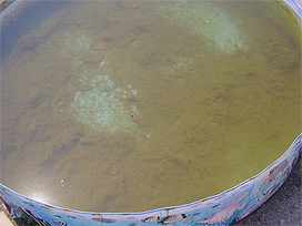昨年から本所の屋外に置いてある実験用簡易プールを掃除したところ、不均翅亜目のトンボ幼虫