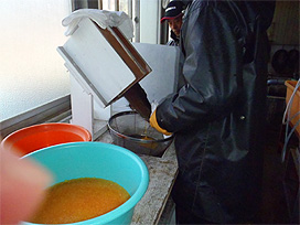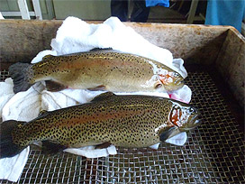 下呂支所で今年 8 回目のニジマスの採卵と人工受精を