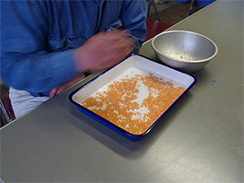 ふ化盆に 発眼卵を入れる |