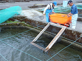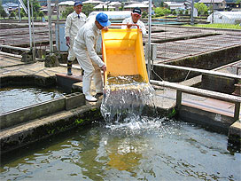井戸水を流しながら、仔魚期の終わりまで収容 |