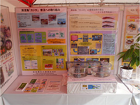 PR コーナー」 で、当研究所はパネルに加え、カジカの水槽展示を行いました。
