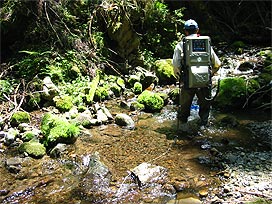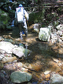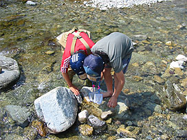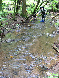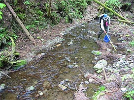 渓流で魚類調査