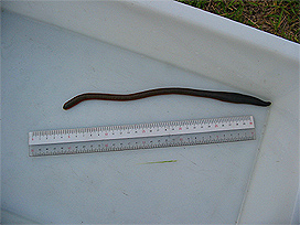 バケツに入れて持ち帰って調べたところ、クガビルという陸生ヒルの