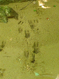 調査中に川岸の砂場で見つけた獣の足跡です。