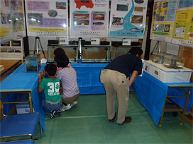 ・当研究所が合同で開催ました。当研究所の職員は、公開実験を担当し、国土交通省水辺共生体験館で