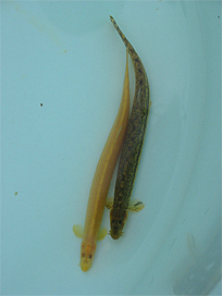 以前、木曽川水系で発見された体色異常のアジメドジョウです。全長
