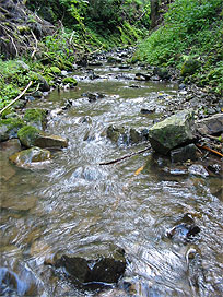 渓流で魚類調査を行いました。今日は、先週木曜日と同じ渓流で調査し、224