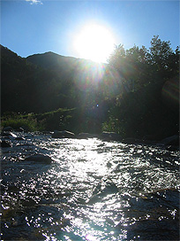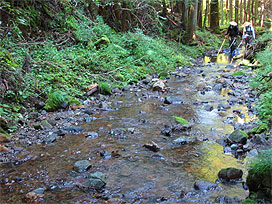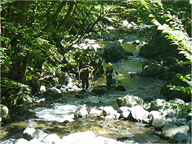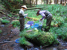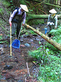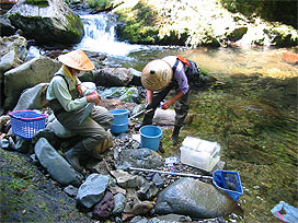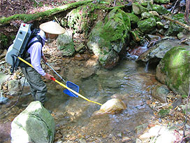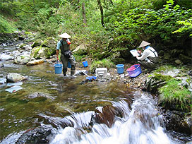 渓流で魚類調査