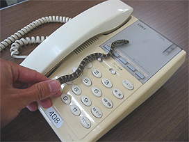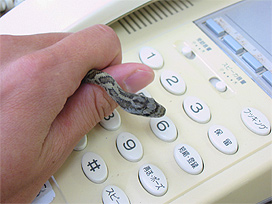 30 cm ほどの幼蛇でしたが、パソコンのマウスや電話機に巻きついていたりして、職員を恐慌状態に陥れました。