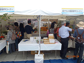 10 月 13 日から 15 日に開催のぎふ清流大会の会場のひとつである岐阜メモリアルセンター清流ミナモ広場の新ブランド農産物