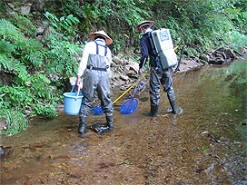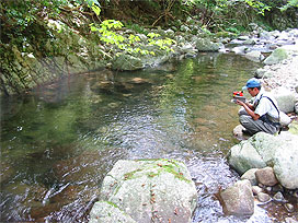 渓流で魚類調査を行いました。今日は、先週とは別の
