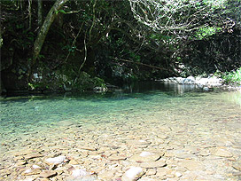 3 日に渓流で魚類調査を行いました。この日は、先月とは別の渓流で調査し、467