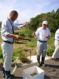 アユの産卵も盛期となり、前回よりも多くのアユが採れているようでした。流域の漁業協同組合の方々が川で採れたアユから卵と精子を取って人工受精を行っており、今回は採卵作業の指導ということで、漁業協同組合の皆さんと一緒に採卵や受精作業を行いました。中腰での着卵作業はなかなかの重労働です。関係者の方々、お疲れ様でした。