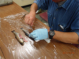 下呂支所に県内の養殖場から魚病診断の依頼がありました。