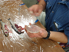・細菌 ・ウイルスの有無などを調べて死亡原因を明らかにし、養殖業者に対応策を指導しています。