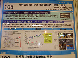 ・実用化研究の結果と進捗状況に関する発表をしました。大学、県、市町村など様々な研究室や団体等の発表があり、それぞれのパネルに関して熱心な議論が行われていました。