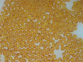 橙色が生卵、 白っぽく変色したのが死卵 |