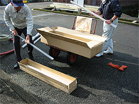 ふ化室では、まず 「ふ化盆 (ふかぼん)」