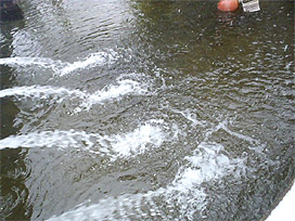 ふ化用水槽 (淡水) から 仔魚を回収