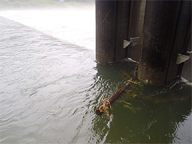 から水路を使って導入しています。雨が続いて川の水が増えたので、飼育用水の取水口がゴミで詰まっていないかの確認とゴミの除去を行いました。堰堤には大きな木が流れ着いていましたが、短いサイクルで何度か増水がありましたので、取水口を詰まらせるような枯れ草等の細かなゴミは多くはありませんでした。
