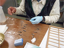 受精前の洗卵作業 (等張液で卵を洗浄)