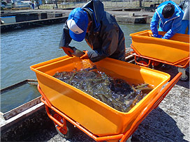 月中旬まで、成熟した親魚を選別しながら採卵と人工受精を順次行う予定です。