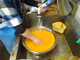 (等張液で卵を洗浄)