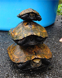 西濃地方で実施した農業排水路での魚類調査において、水路内のほぼ同じ場所でニホンイシガメ3尾と遭遇しました。