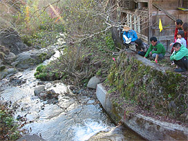 この企画では、会場そばの渓流でイワナの親魚放流とその産卵行動の観察会が行われました