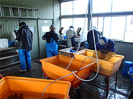 現在は、10 月中旬から下旬にかけて人工受精を行った卵が発眼期を迎えており、検卵作業を順次進めています。