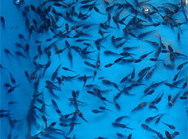 カジカは、淡水でふ化させた後、仔魚から稚魚にかけての期間は人工海水で飼育しています