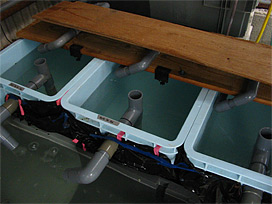 ふ化用の水槽 (淡水 かけ流し)