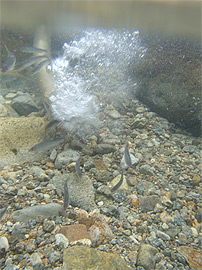 8.65 g) を放流しました。1 個体ずつ、脂びれという小さなひれを切って標識してあります
